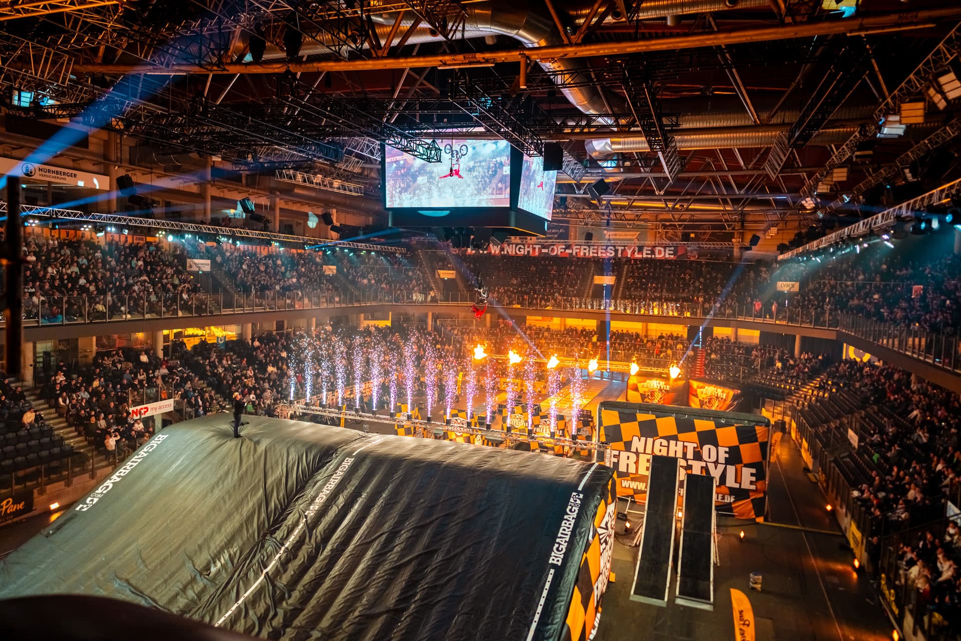Über 9.000 Fans strömten am 31.01.2026 zur neuen Night of Freestyle Show in die PSD Bank Nürnberg Arena um die Fahrer mit den verschiedensten Gefährten über die Rampen springen und flippen zu sehen.